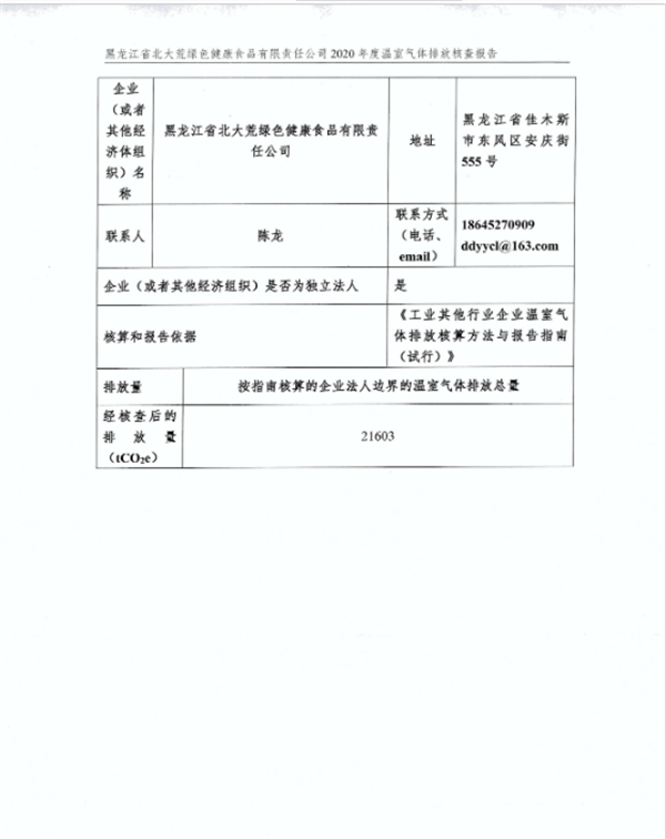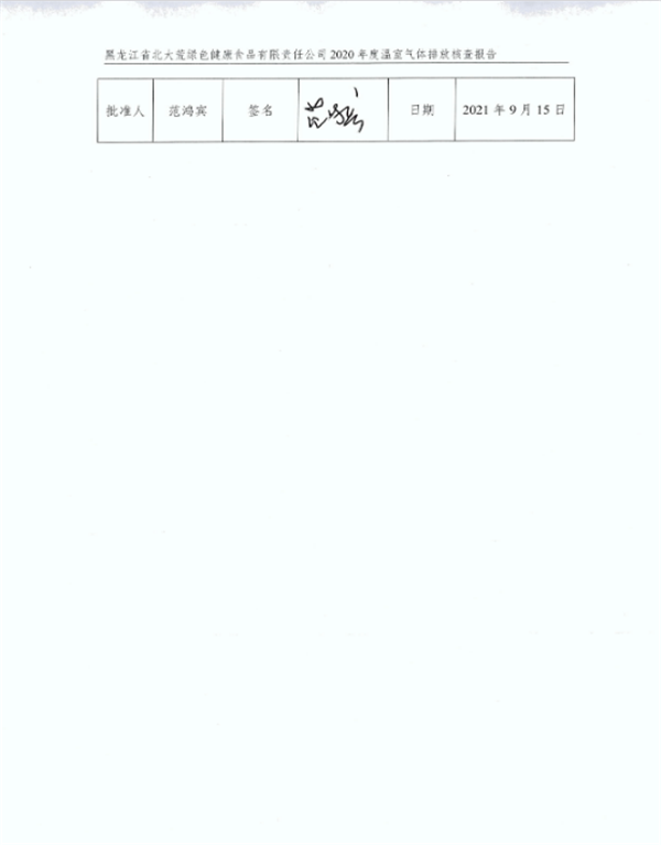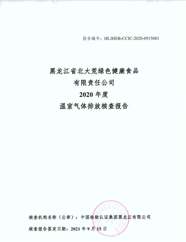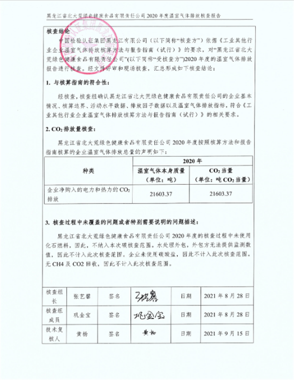 黑龍江省北大荒綠色健康食品有限責(zé)任公司--2020年度溫室氣體排放核查報(bào)告